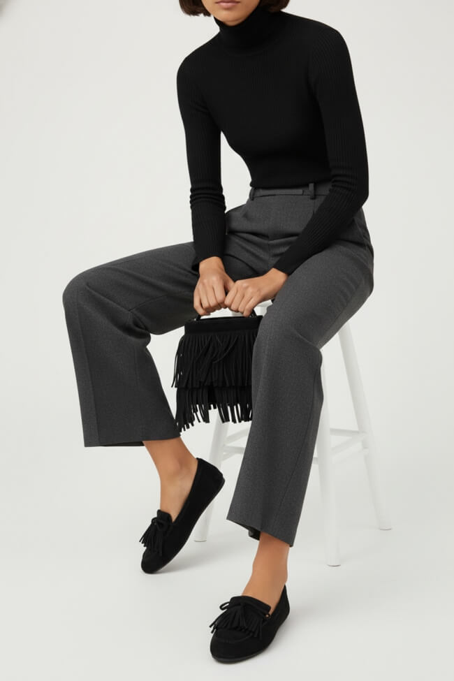 С midi пола: Създай женствен вид, като комбинираш лоуфърите си с midi пола и лек пуловер в есенни цветове.