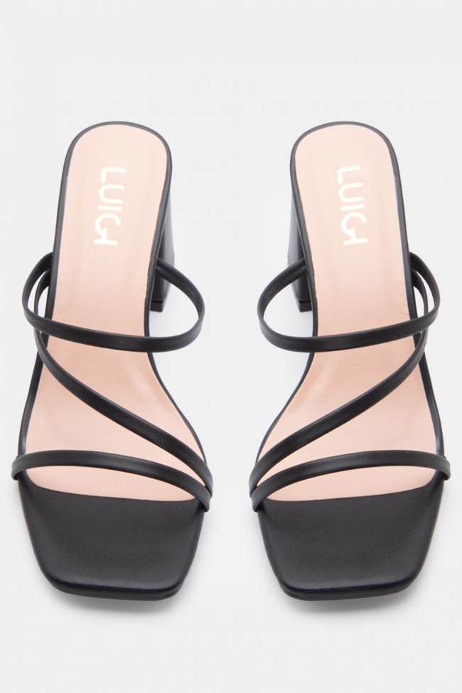 - Alege mules înalte satin sau din piele cu detalii strappy pentru un rezultat sleek & feminin.
