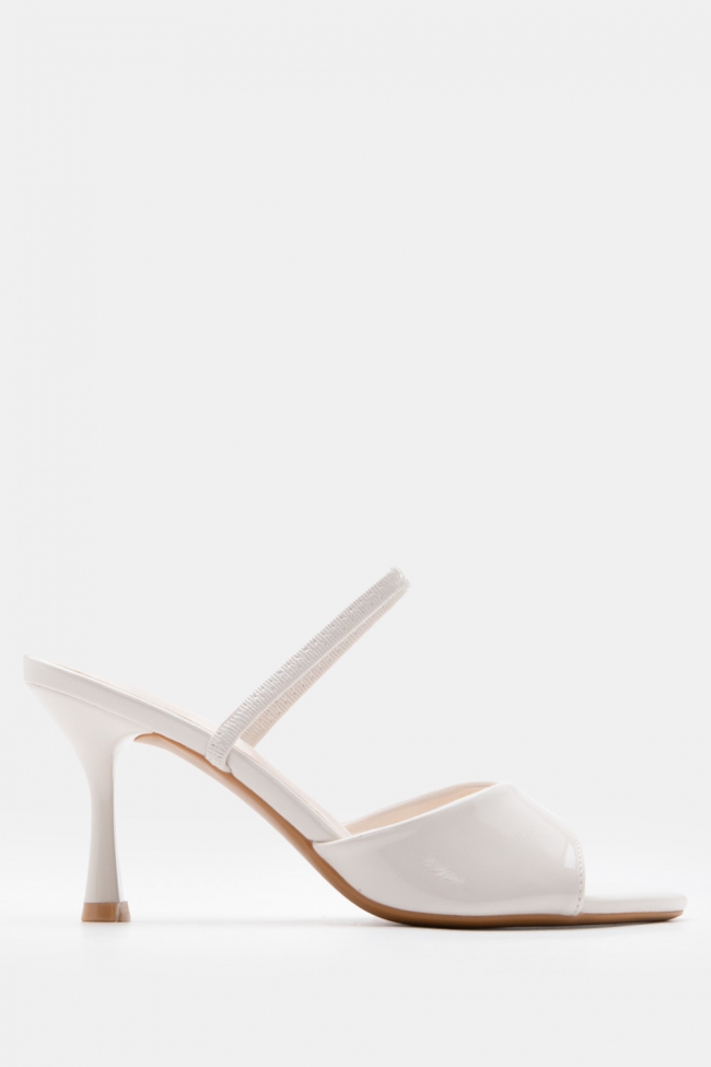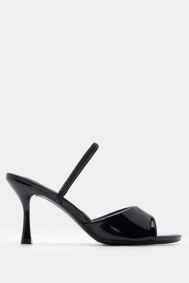 - Choose high mules satin or leather with strappy details for sleek & feminine results.