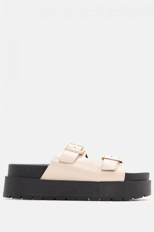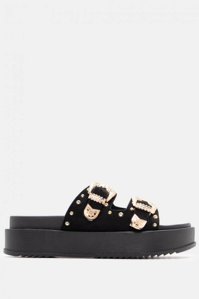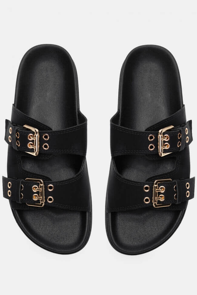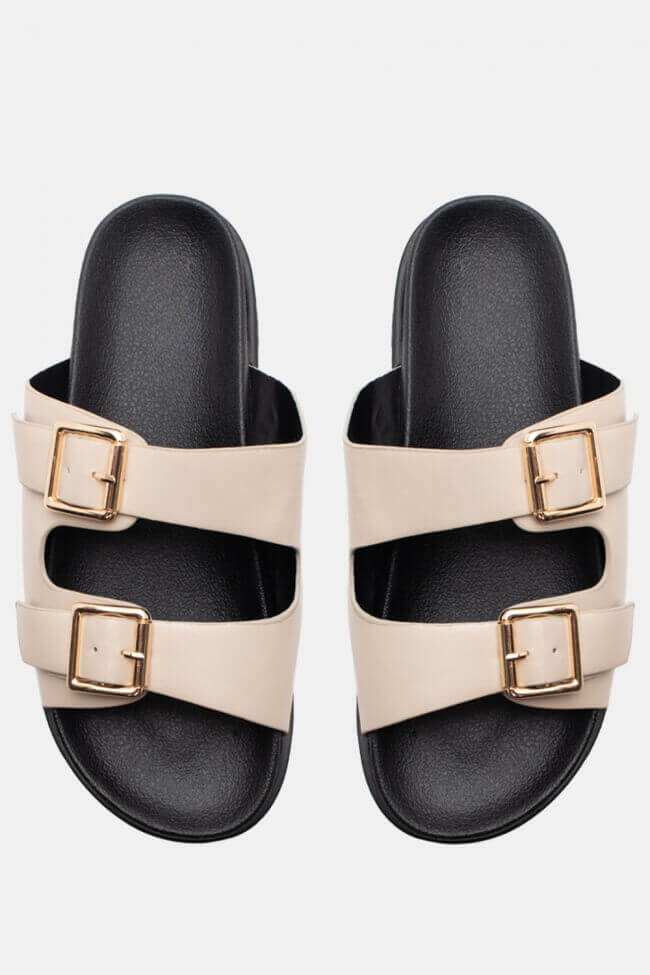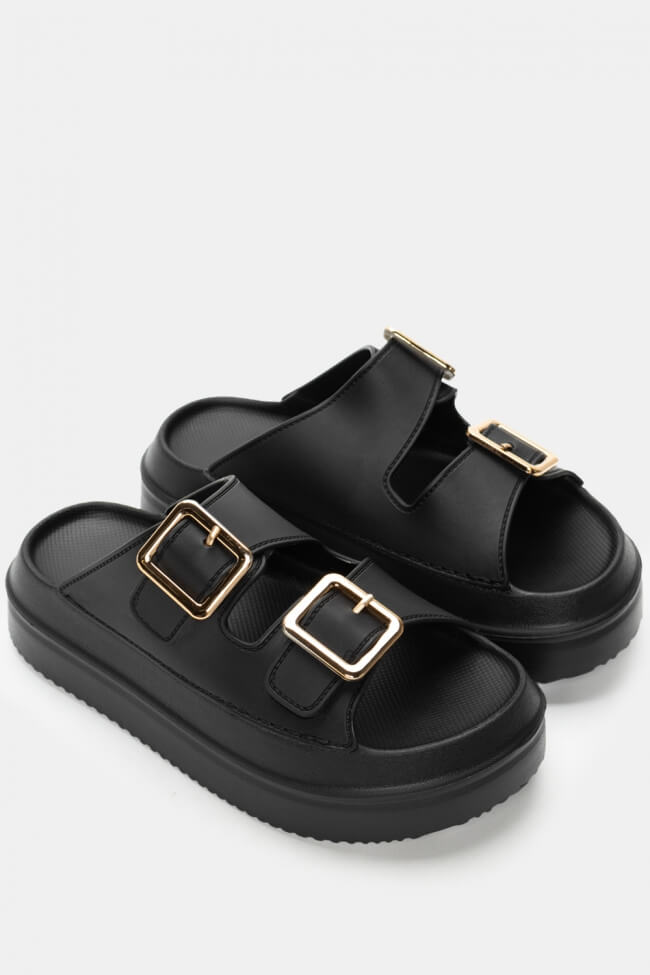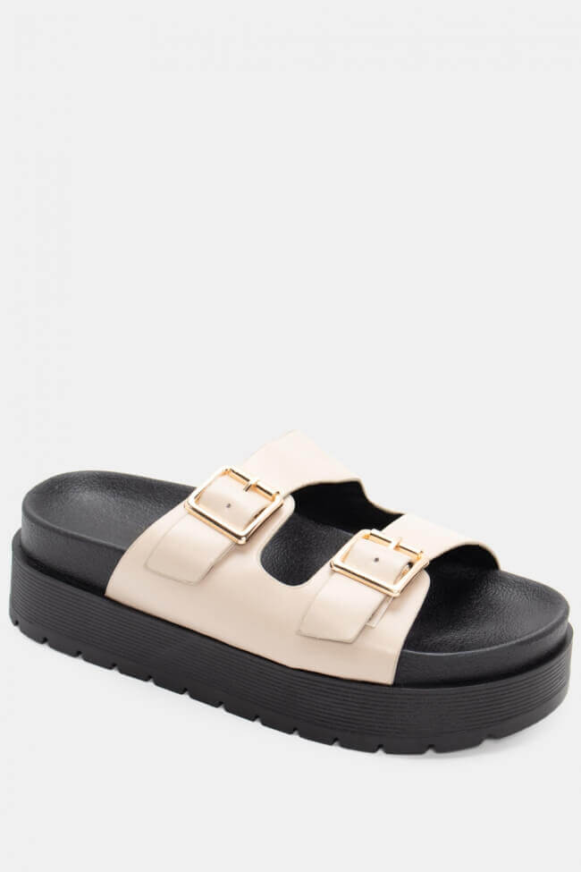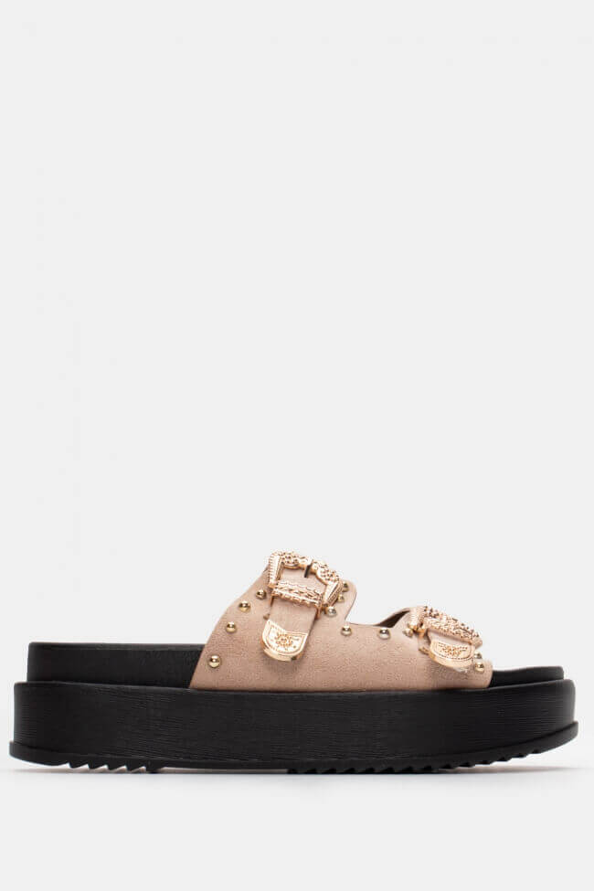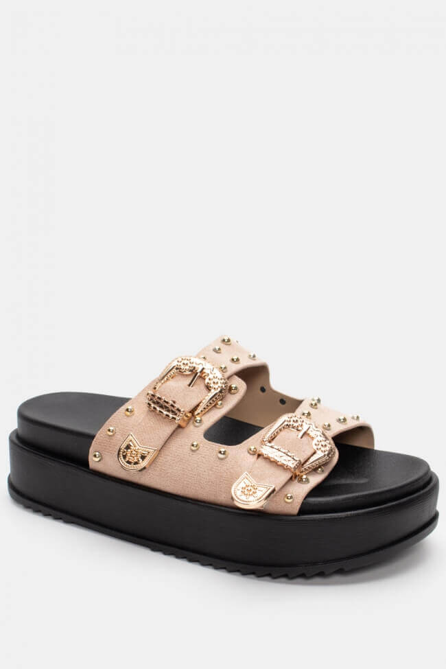 Сандали Flatform с двойни каишки и метални елементи
