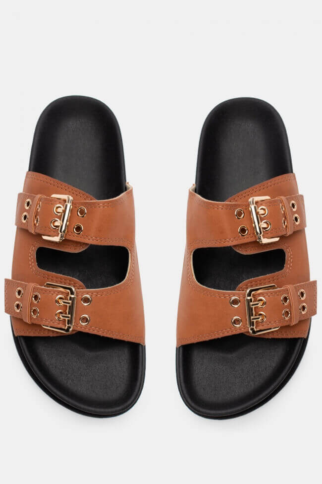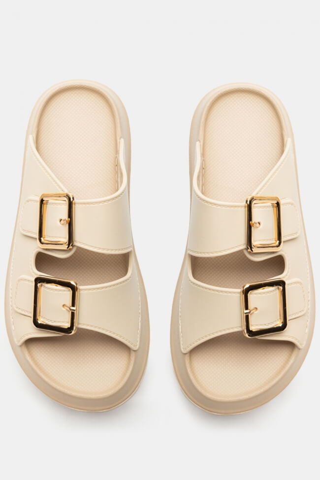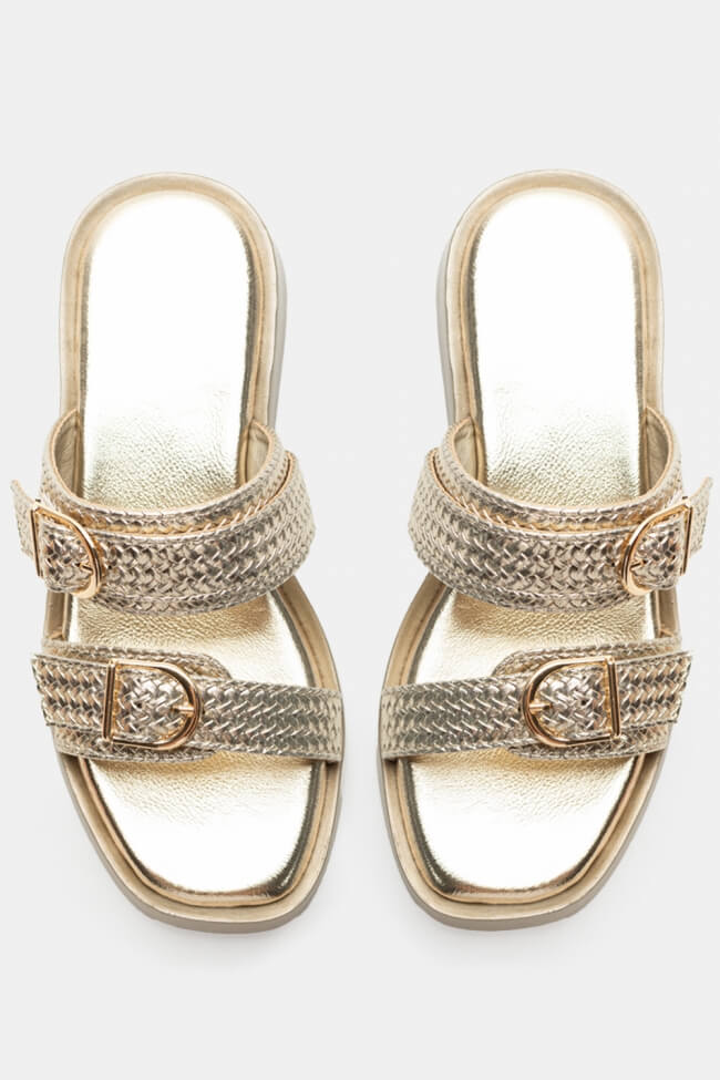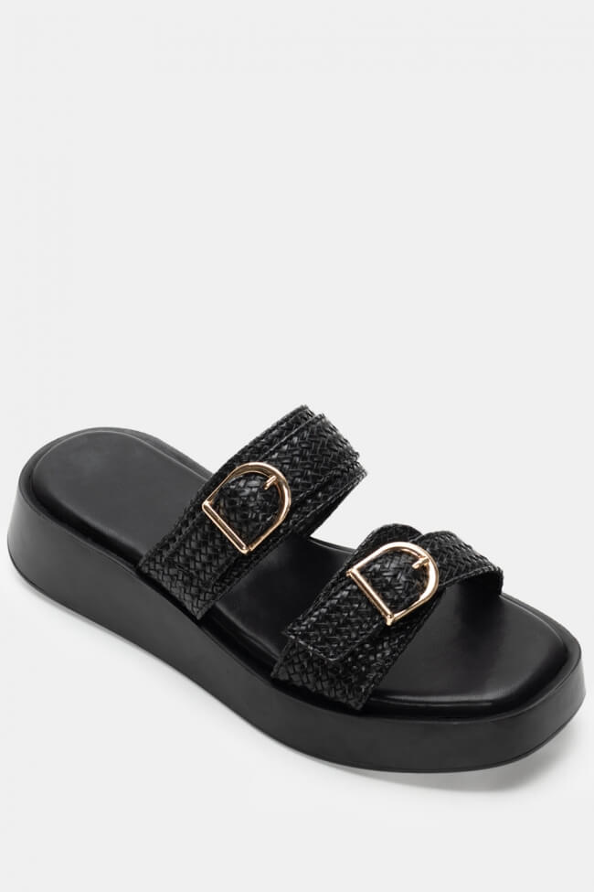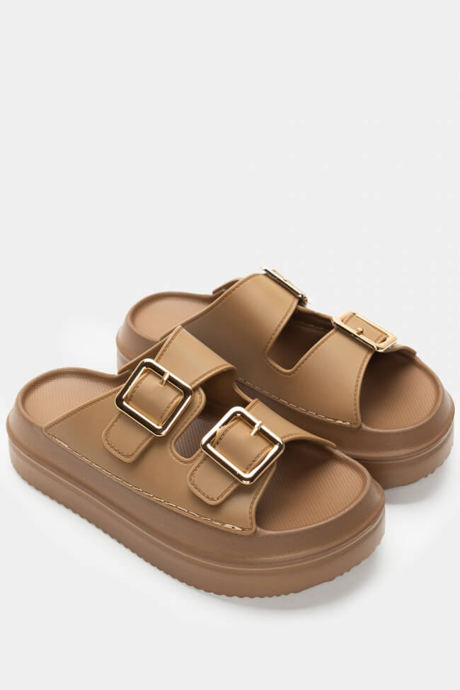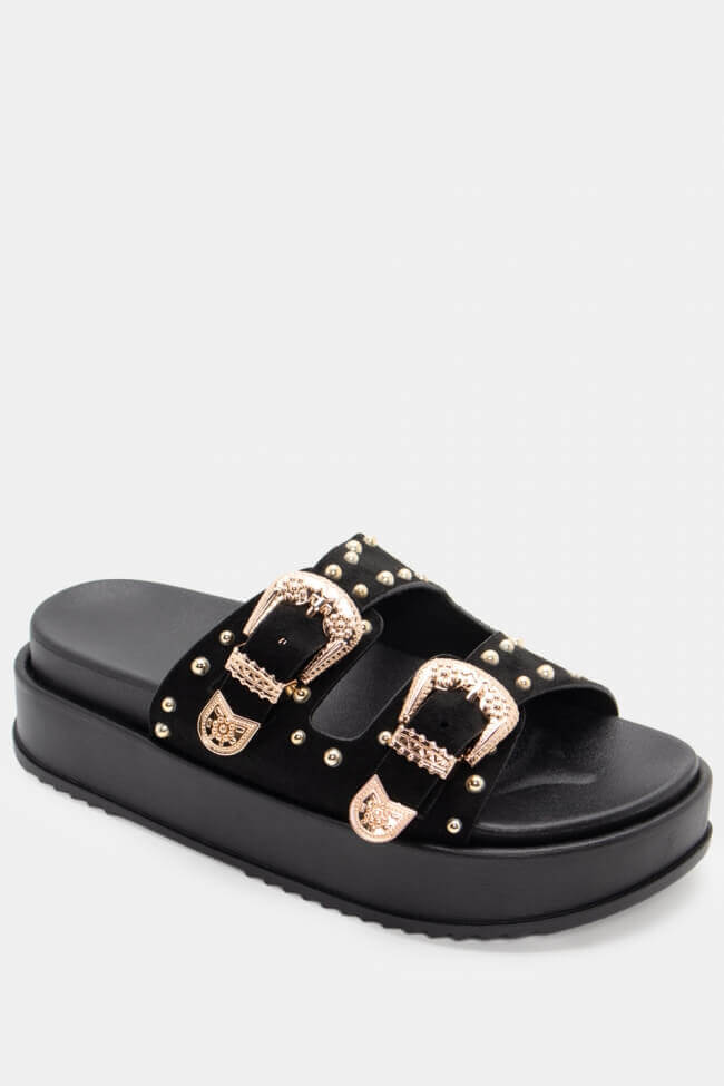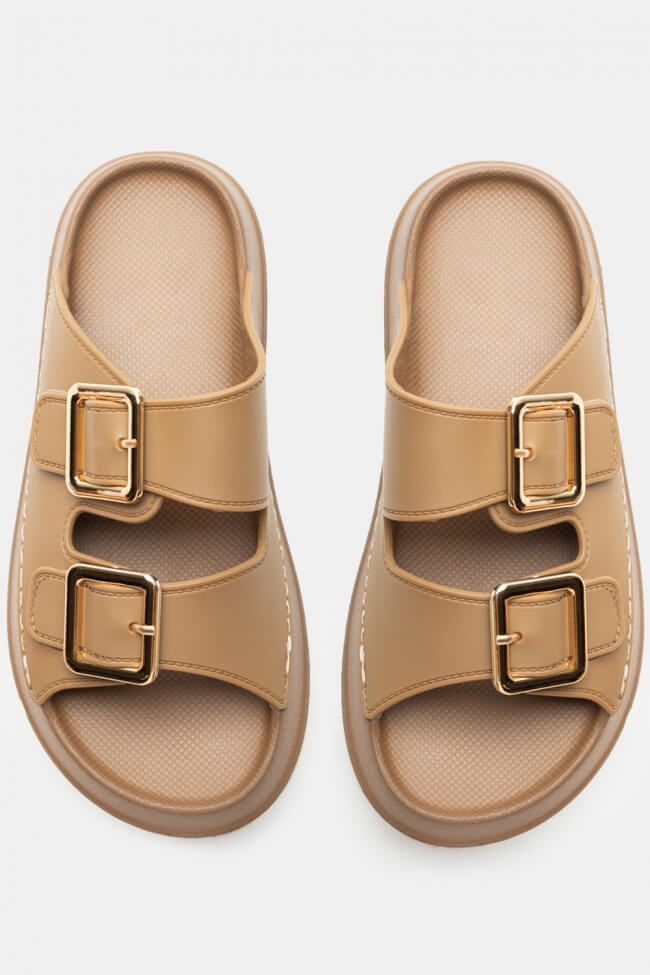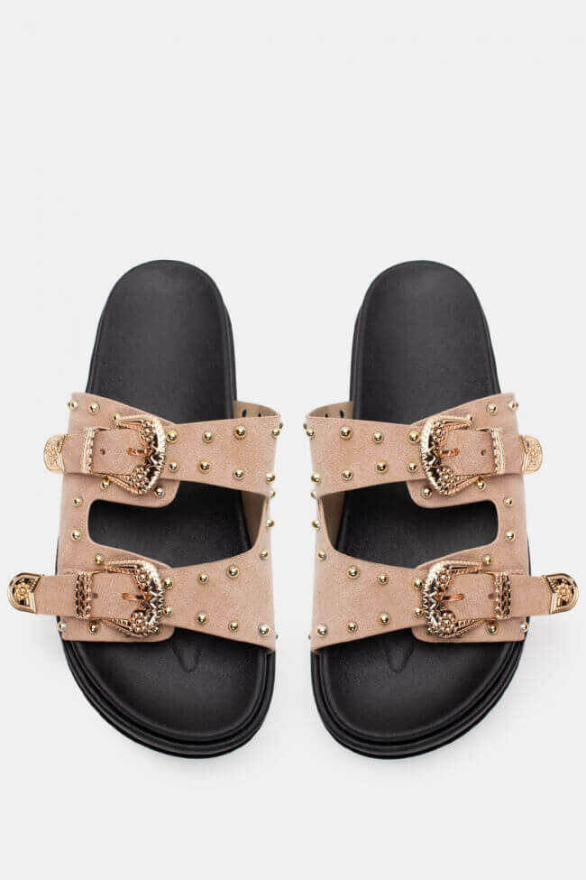 Сандали Flatform с двойни каишки и метални елементи