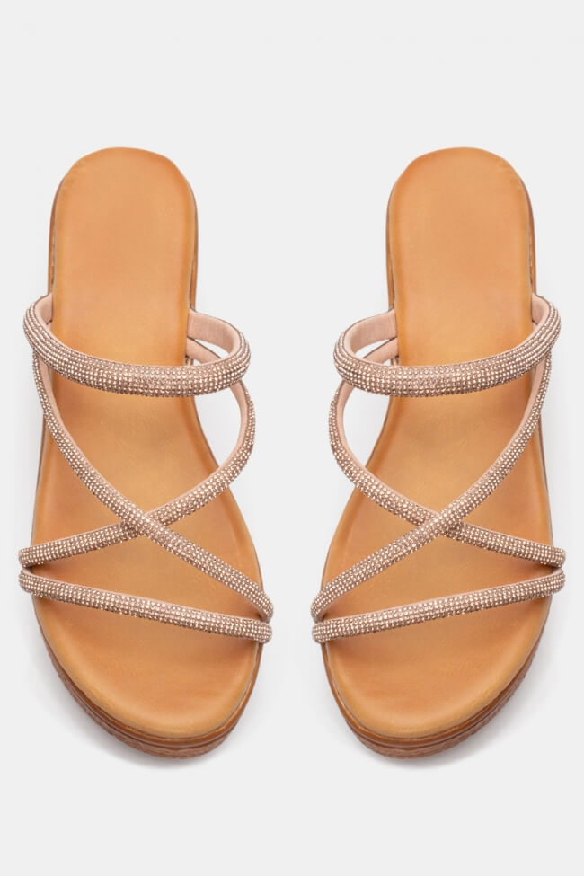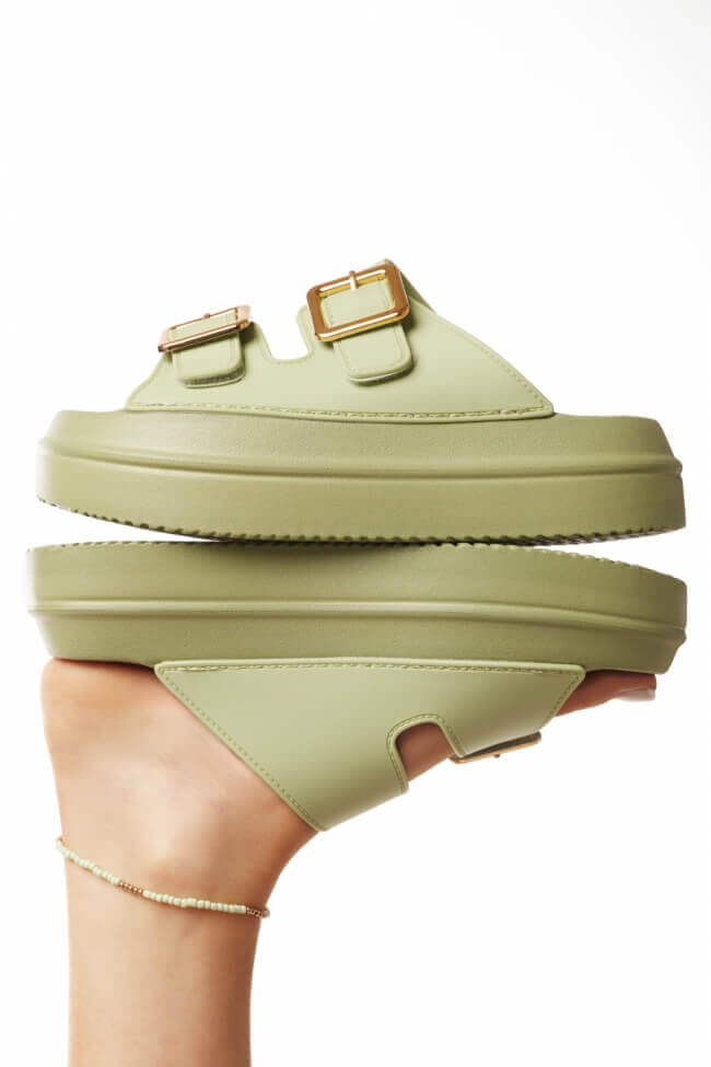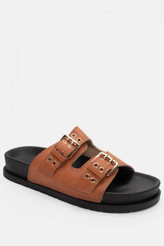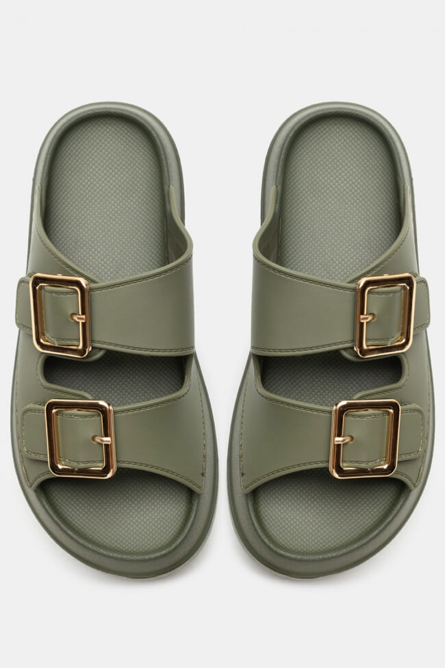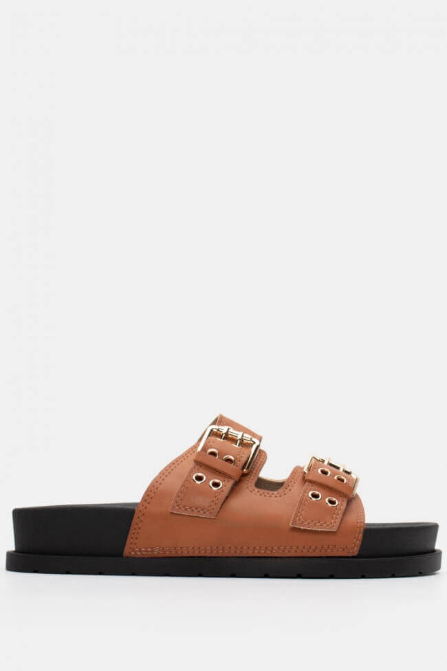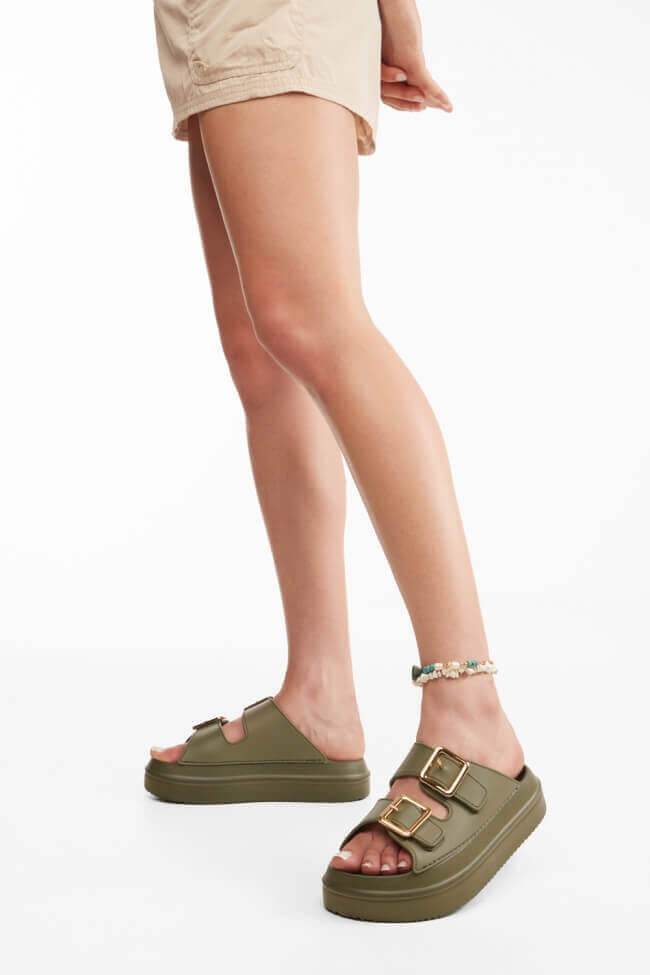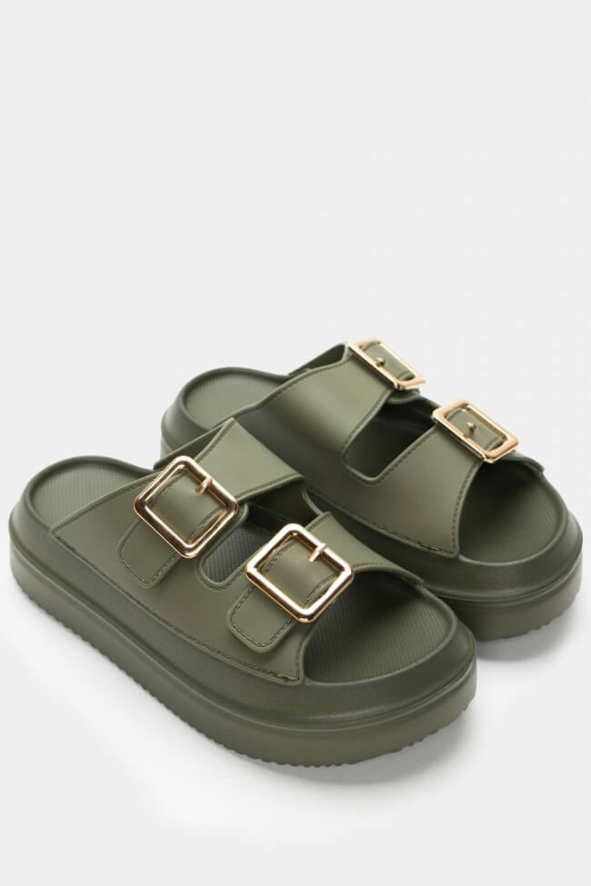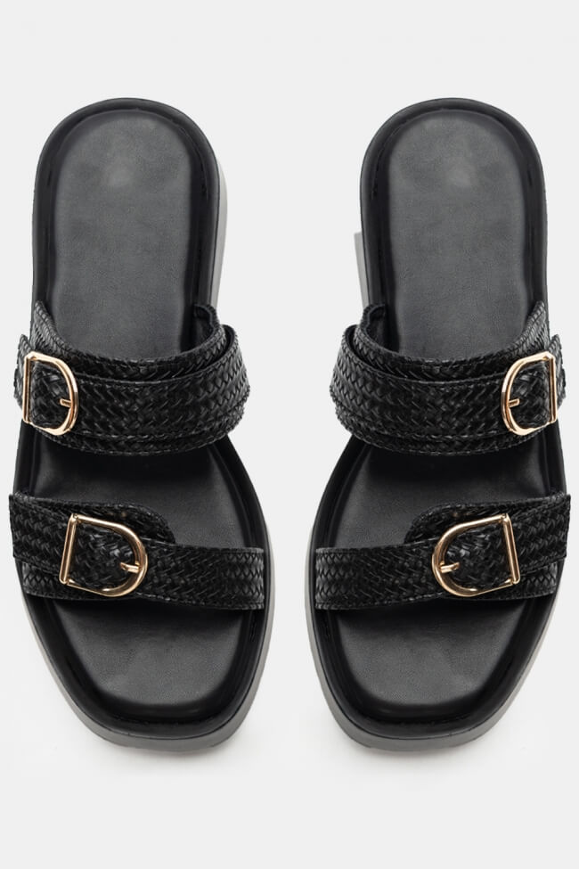 Сандали Flatform с двойни каишки и метални елементи