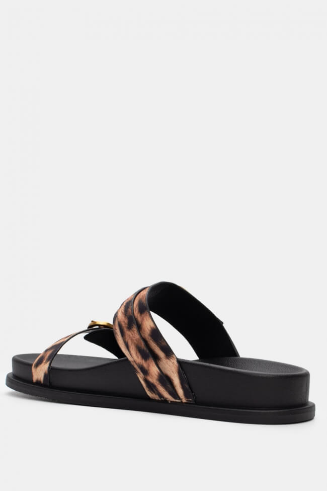 - Animal print flatforms за resort стил и островни бягства.