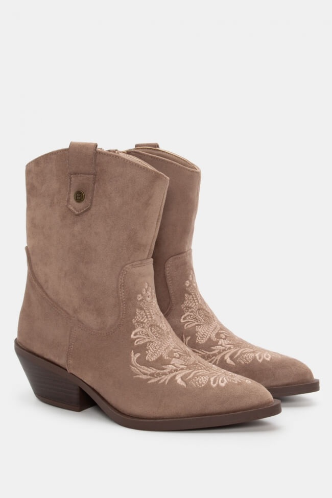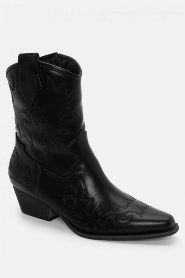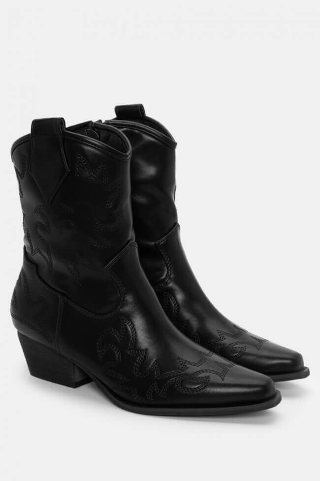 Stivaletti Cowboy con Ricamo Decorativo