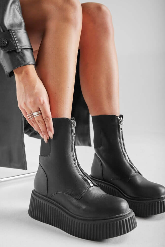 - Ieșire de Seară: Vrei să faci o declarație de stil? Poartă-ți ghetele cu talpă dublă cu o fustă mini sau o rochie mulată. Adaugă accesorii și bijuterii strălucitoare pentru un plus de glam. Dacă stilul tău este mai îndrăzneț, ghetele din material lucios sau cu detalii metalice sunt ideale pentru o ieșire de seară care nu va trece neobservată.