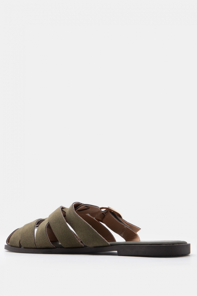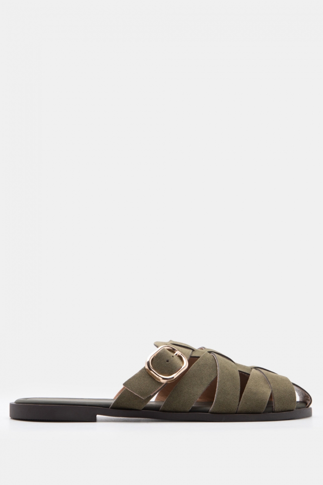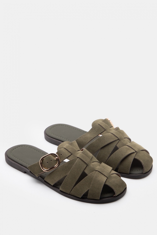 Flat Sandals with Elaborate Straps & Buckle